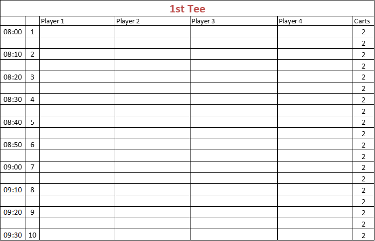 Carts: Two carts per fourball will be allocated. Carts will be available at the clubhouse and will be marked with players’ names.